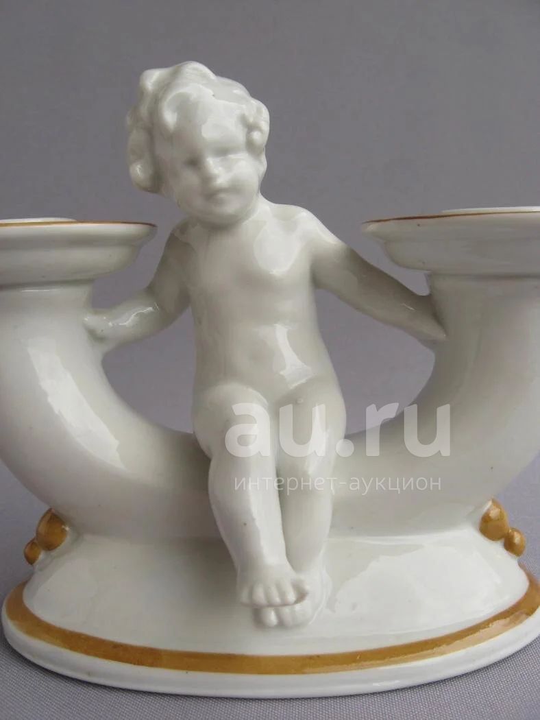 Очаровательный подсвечник с путти известной фарфоровой мануфактуры Фасольд и Штаух (Fasold & Stauch) в г. Бок-Валлендорф, Тюрингия, 1930-40-е гг. Размер 18 х 13 х 9 см. Отличное состояние, без сколов, трещин и реставрации.
