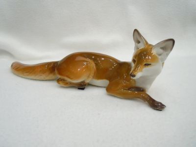 "Лежащая лисица" Nymphenburg, Германия, начало 20 века, фарфор, скульптор Теодор Кёрнер